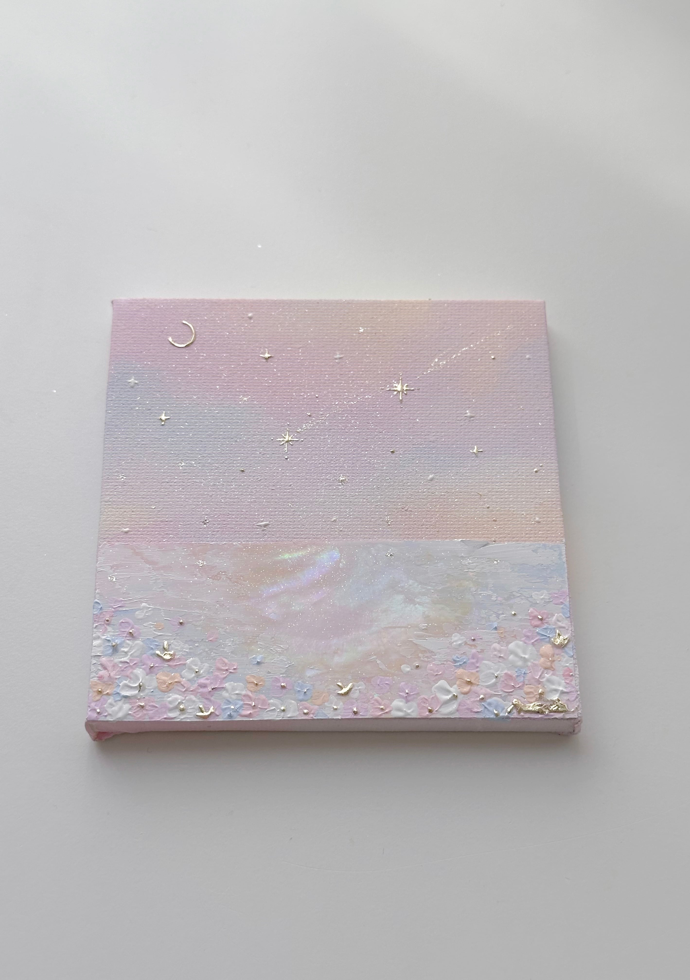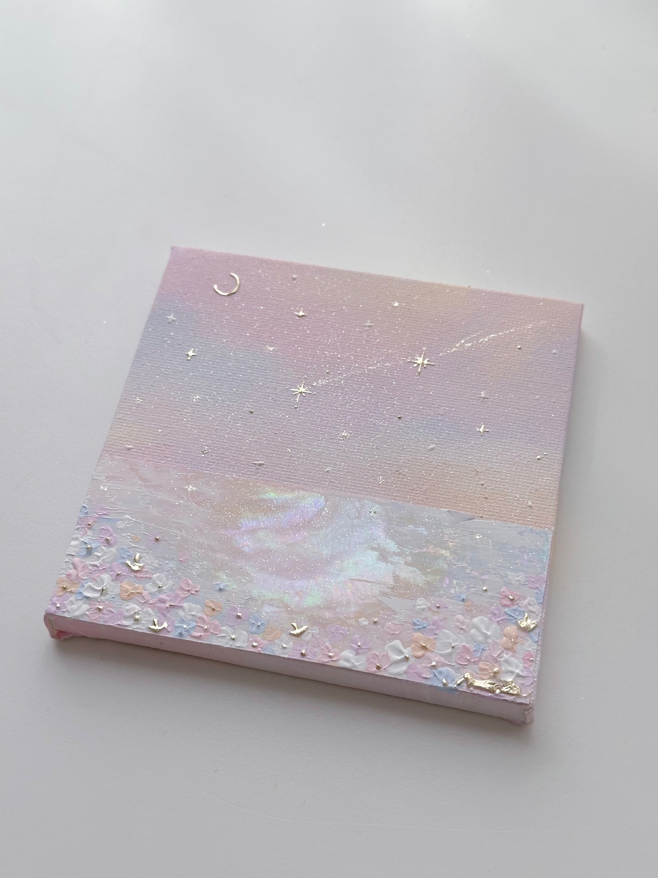 ふたつの世界をミニサイズのキャンバスに閉じ込めました。
