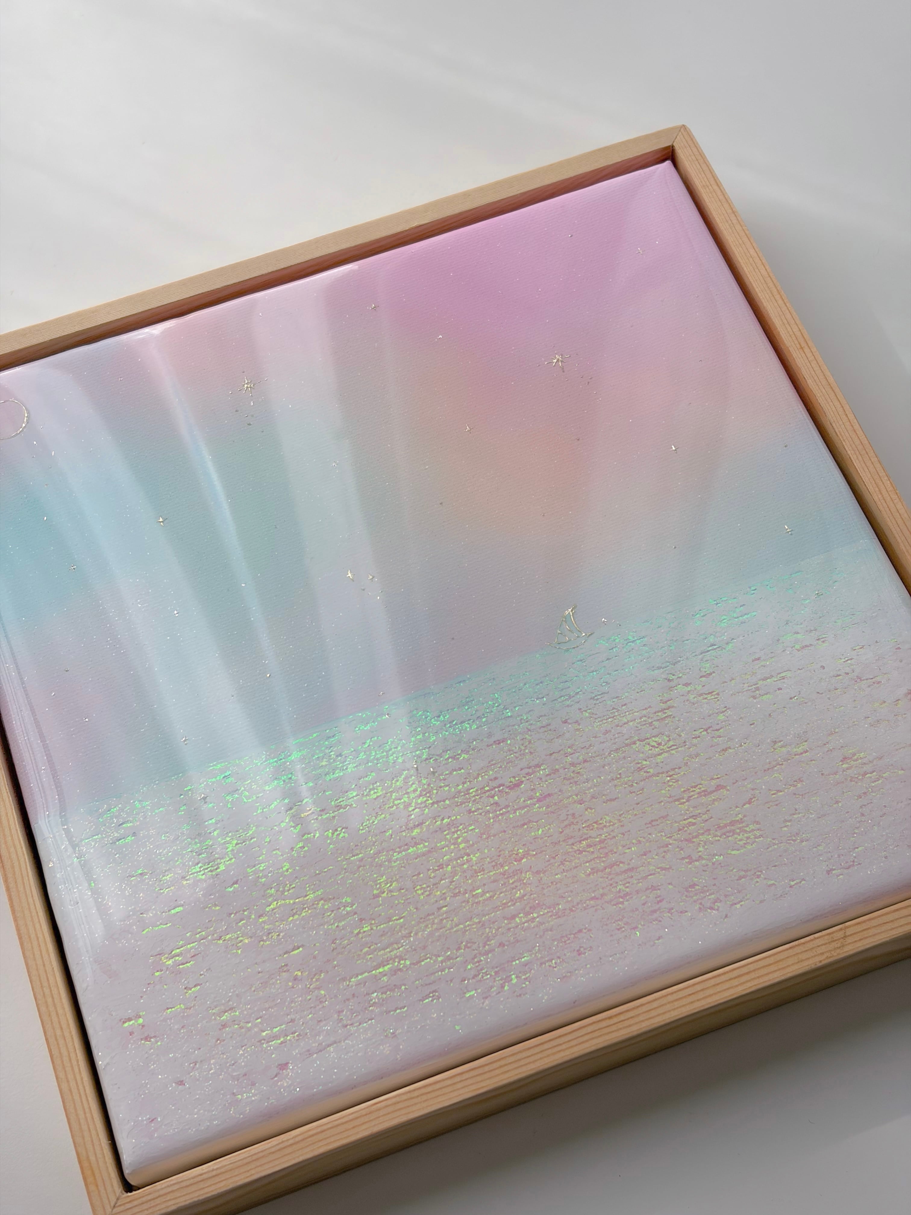仕上げ:繊細なラメを何種類も入れた、レジンコーティングで透明感と奥行きを演出しています。
