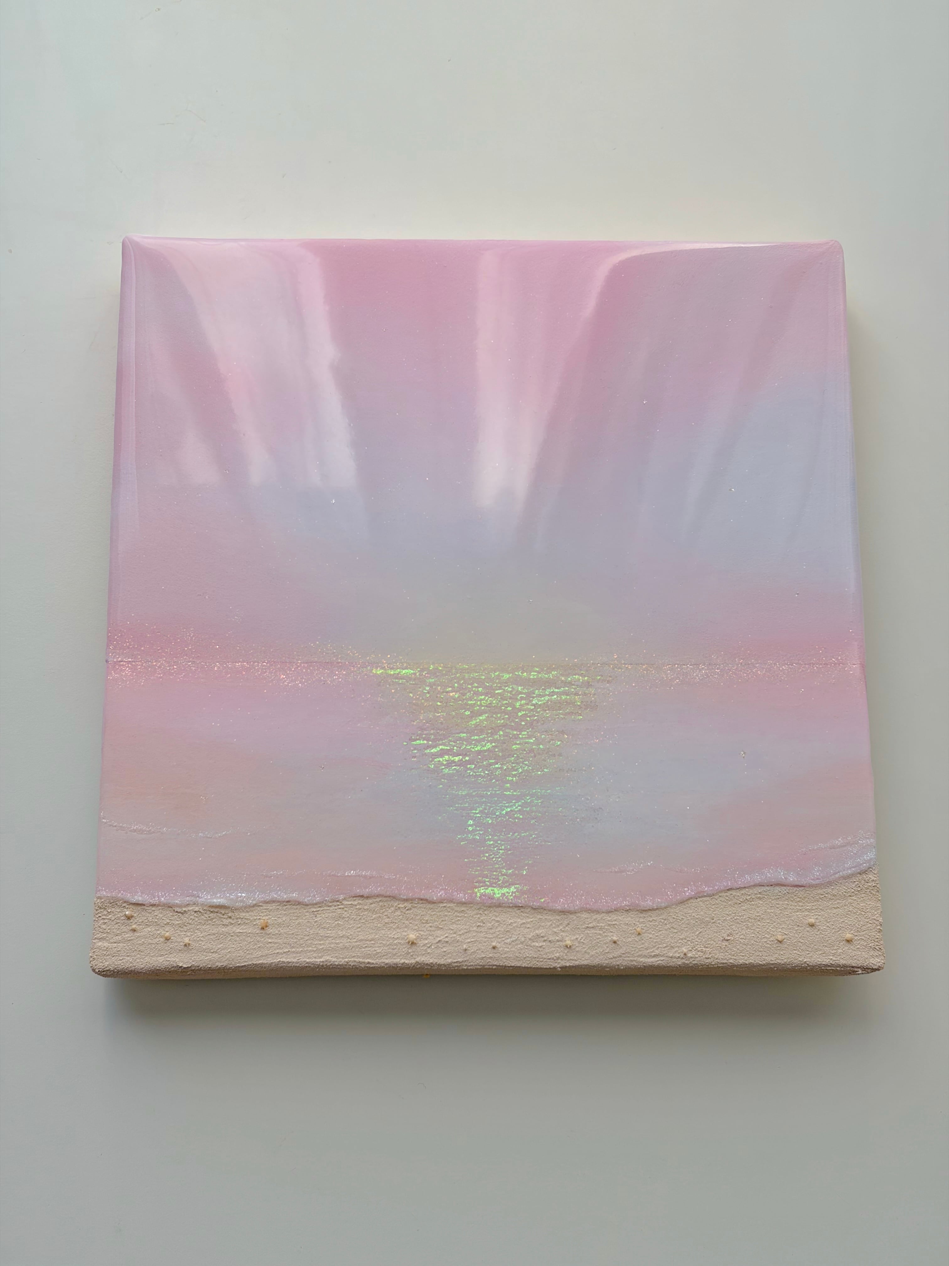 仕上げ:繊細なラメを何種類も入れた、レジンコーティングで透明感と奥行きを演出しています。