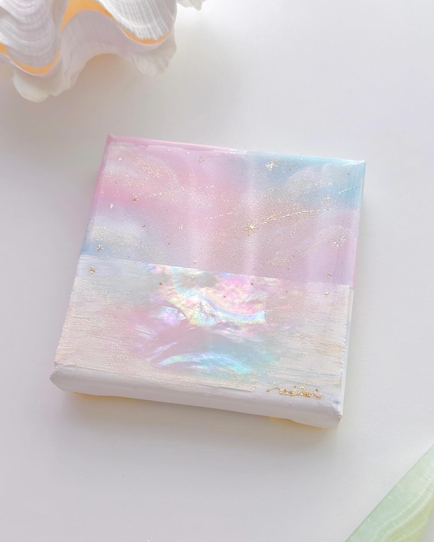 夢のような淡く優しい色合いで、コーティングには細かいシャンパンゴールドのラメを入れて仕上げます。